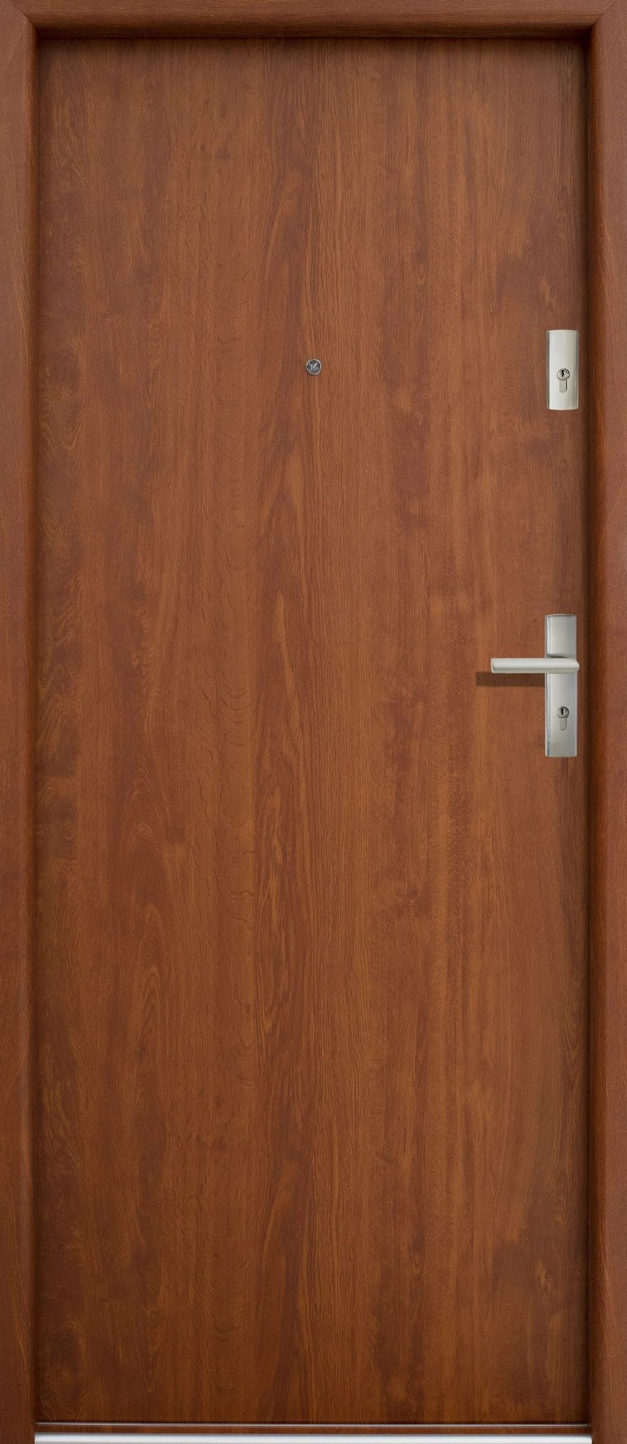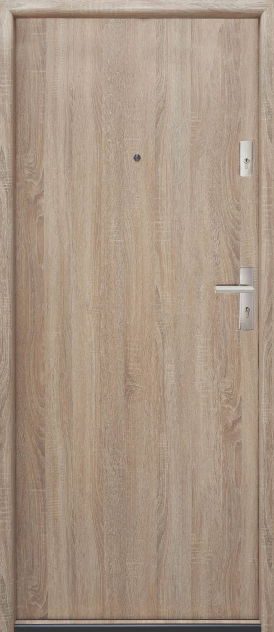 ościeżnica z drewna warstwowo klejonego pokryta identycznym laminatem co drzwi.
