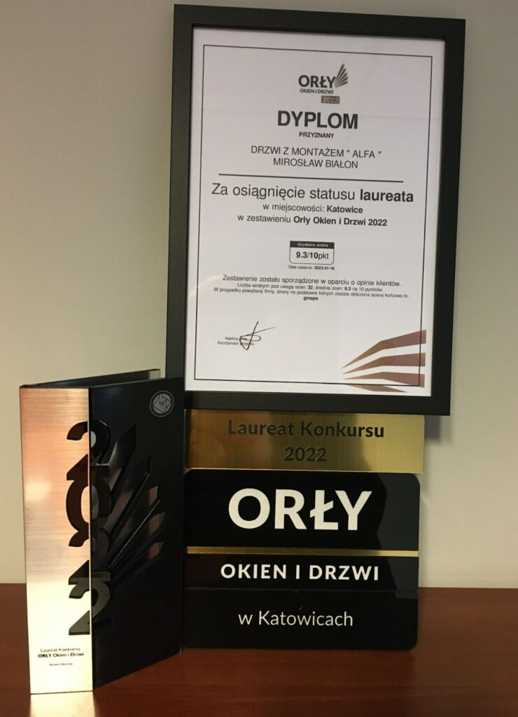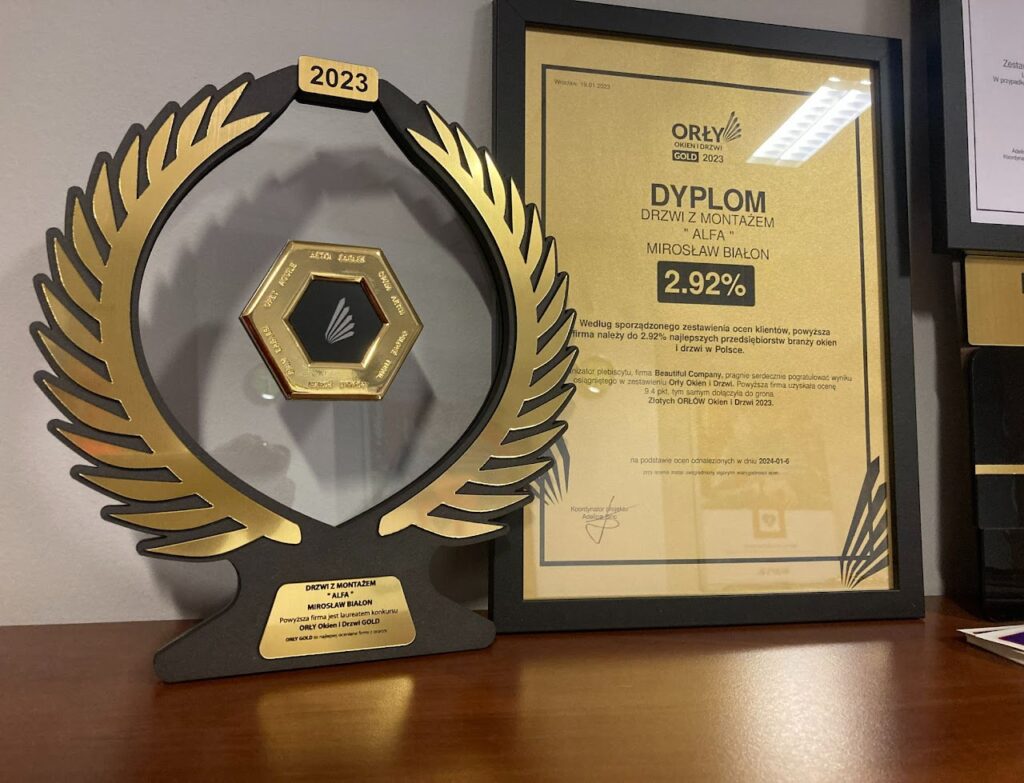Nagroda w plebiscycie ORŁY 2024 w kategorii ORŁY Okien i Drzwi przyznana dzięki klientom, którzy świetnie ocenili nasze usługi montażu drzwi. Powierdza to, że kolejny raz nam zaufaliście za co bardzo dziękujemy!
