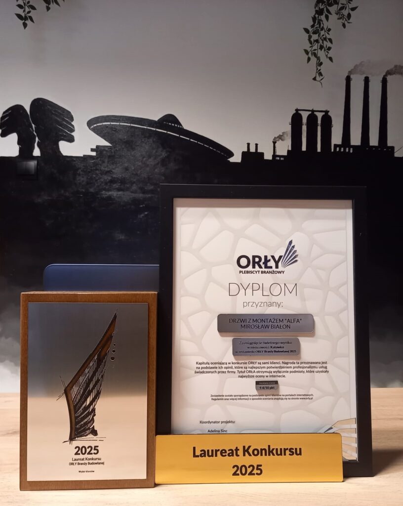 Dziękujemy za wszystkie wystawione opinie, polecenia i zaufanie, bo to właśnie one stoją za tym wyróżnieniem. Nagroda mobilizuje nas, aby dalej utrzymywać wysoki standard pracy przy każdym montażu drzwi na terenie Katowic i całego Śląska.